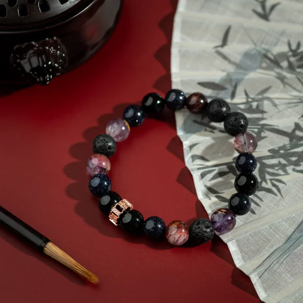 Stepping into the realms of self-improvement, The Force Bracelet transcends the challenges often faced by those with a competitive streak. In the pursuit of success, occasional bursts of aggression can mar the journey, compounded by underlying feelings of insecurity and the imposter syndrome. This bracelet becomes a potent ally for anyone seeking to transform these pain points into strengths. Harnessing the assertive power of Black Agate, the renewing energy of Blue Sandstone, and the guiding influence of Purple Phantom, it instills focused determination. Lavastone, with its stabilizing properties, becomes the cornerstone for building resilience. This solution is not just a bracelet; it’s a pathway to nurturing self-assuredness and conquering insecurities, enabling individuals to navigate their journey with confidence and purpose.