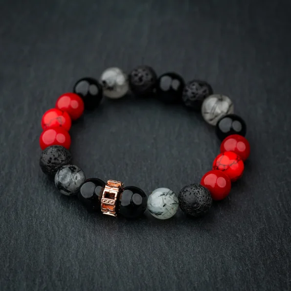 Conquering communication challenges is a vital aspect of personal growth, especially for those whose protective instincts manifest as reticence in expressing feelings and needs. The Frontier Bracelet steps into this uncharted territory, offering a transformative solution for overcoming the barriers hindering open communication. With the powerful combination of Black Agate instilling courage, Lavastone providing stability, Black Rutilated Quartz fostering acceptance of challenges, Coral Red calming the mind, and Red Turquoise infusing expressive energy, this bracelet becomes a beacon for enhanced communication skills. It empowers the wearer to navigate the emotional landscape with newfound ease, fostering increased self-confidence and facilitating open expression of emotions and needs.