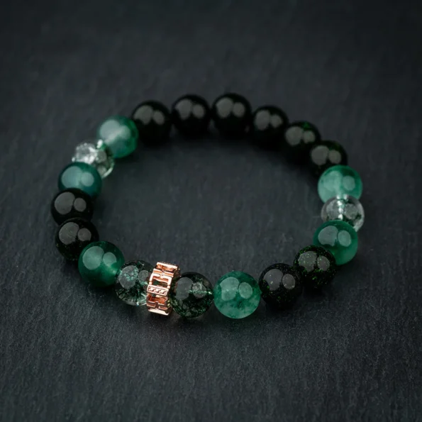 Facing challenges rooted in a focused and single-minded approach can lead to being unforgiving and overlooking the importance of appreciation. The struggle with finding balance and embracing a more open perspective may hinder personal growth and relationships. The Bold Bracelet steps in as a transformative solution, offering the emotional stability of Green Phantom, the tranquility of Moss Jade, and the creativity of Sand Dinas. This bracelet becomes a guiding light, promoting forgiveness, appreciation, and a harmonious blend of boldness with wisdom. It empowers individuals to break free from the limitations of single-mindedness, fostering personal growth, and enriching relationships with a more open-hearted approach.