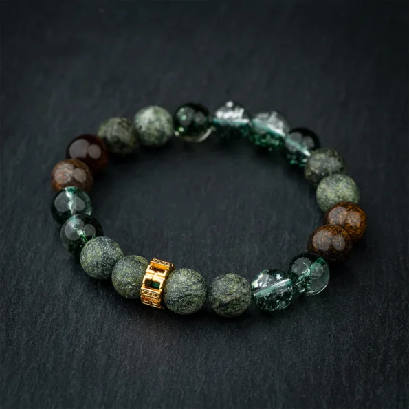 The pursuit of versatility may inadvertently bring about impatience and a reduced tolerance for second chances, possibly leading individuals to swiftly move on from opportunities. Empower your adaptability and overcome obstacles with The Vanguard Bracelet, a transformative accessory designed to address the challenges associated with versatility. This bracelet is a guiding force in cultivating patience and promoting tolerance for thoughtful decision-making. Infused with the balancing properties of Serpentine, the emotional stability of Green Phantom, and the self-esteem boost from Copper Bronzite, it serves as a powerful tool to guide decisions, foster empowerment, and enable purposeful and resilient leadership. Beyond a mere accessory, The Vanguard Bracelet becomes an ally in navigating the nuanced aspects of versatility and decision-making.
