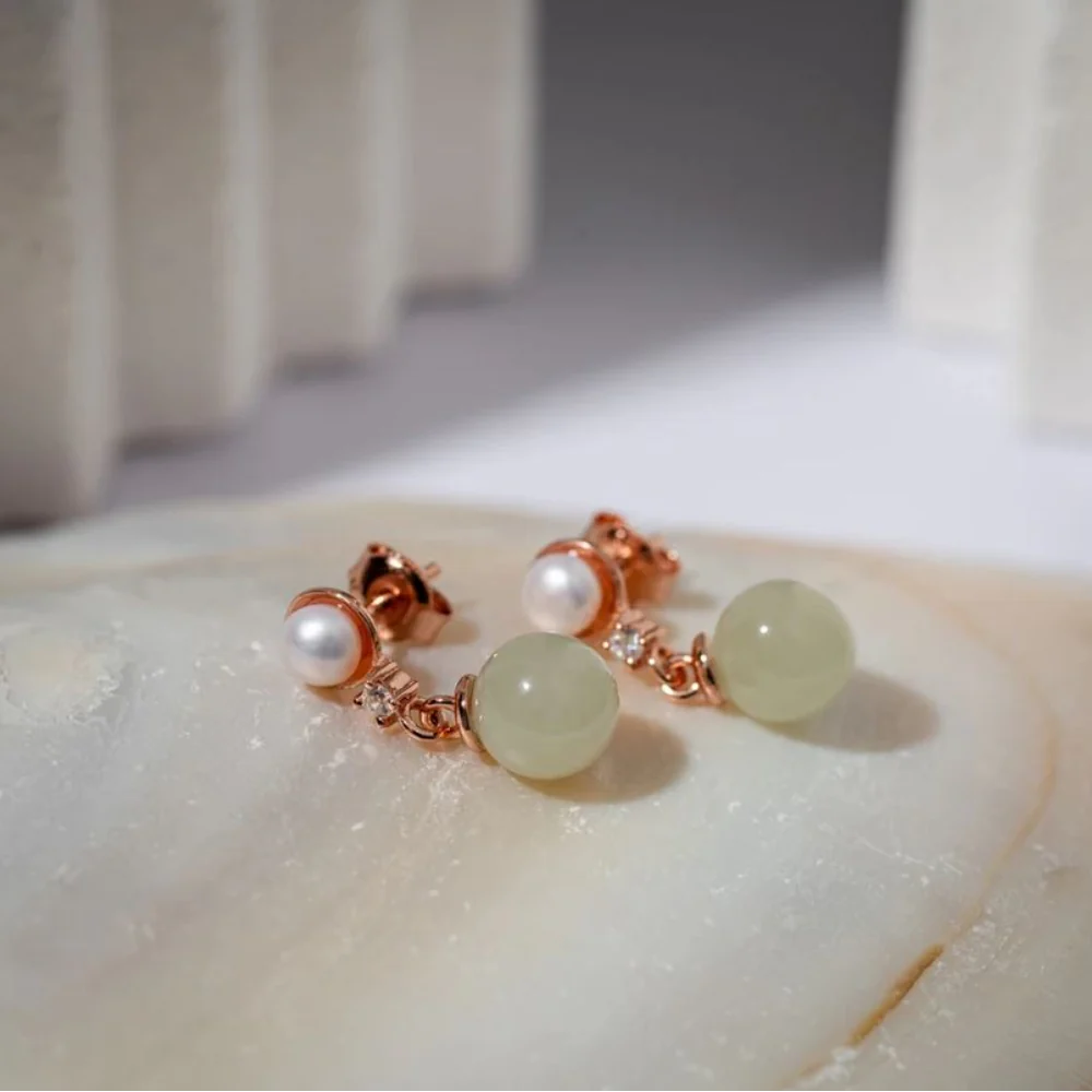 Harmony Cascade – Hetian Jade Collection Earrings “祥玉明珠”和田玉耳环