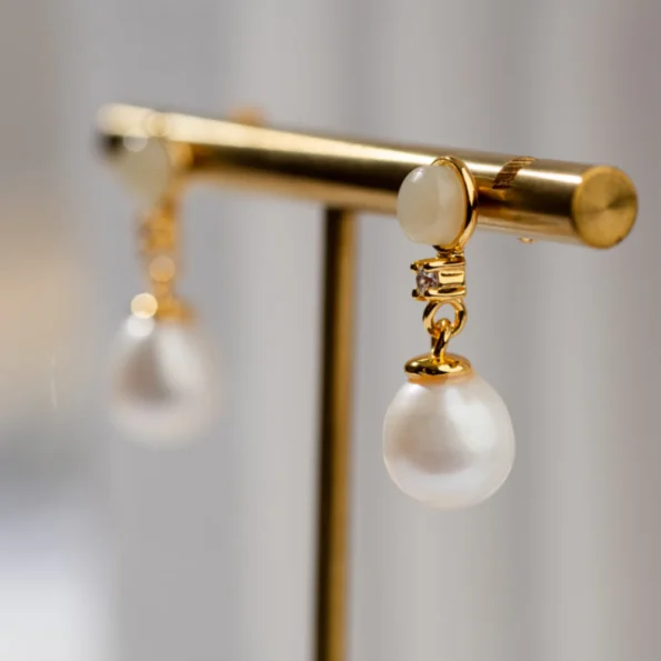 Harmony Cascade – Hetian Jade Collection Earrings Harmony Cascade embodies elegance and balance with its exquisite design of Hetian jade earrings, complemented by pearls and cubic zirconia stones. This harmonious blend of elements creates a captivating aesthetic while balancing the features of different materials.