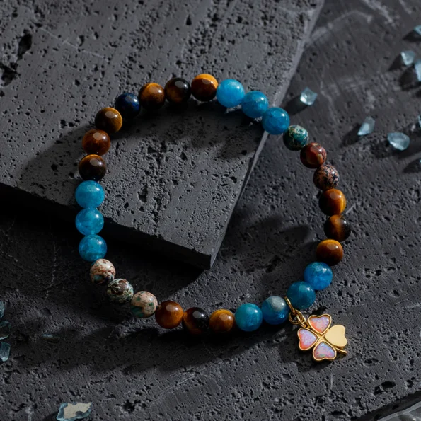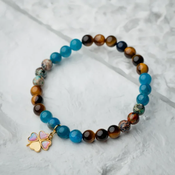 Life can be challenging when dealing with a deep intensity and a penchant for secrecy, hindering the ability to connect with others openly. The Seeker Bracelet is designed to alleviate these unique struggles, offering a tailored remedy for individuals grappling with self-expression difficulties. If you often find it hard to maintain focus and mental clarity amid life’s complexities, the Fusion Tiger Eye in this bracelet serves as a supportive ally. Grounding the mind, it aids in navigating challenges and maintaining clear thinking. The Clover charm is a positive reinforcement of progress and a reminder of your transformative journey. Embrace The Seeker Bracelet, not just as an accessory, but as a catalyst for growth, clarity, and, most importantly, enhanced communication skills. Let this bracelet guide you in overcoming communication challenges and embodying a more expressive, connected, and confident self.
