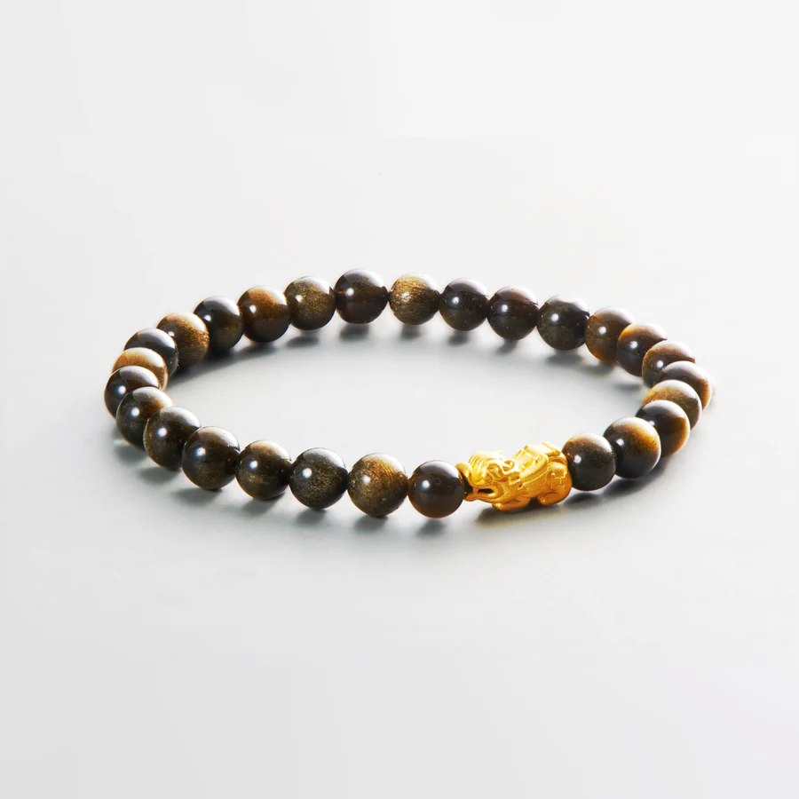 Fortify your spirit with The Citadel Pixiu Bracelet, crafted exclusively from Gold Obsidian—the ultimate stone of protection and strength. This bracelet serves as a powerful shield, grounding the wearer and promoting clarity in the face of life’s challenges. The 0.3g 999 Solid Gold Pixiu amplifies wealth and prosperity, safeguarding both your fortune and your inner peace.