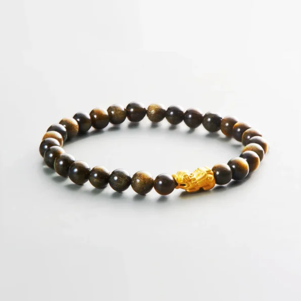 Fortify your spirit with The Citadel Pixiu Bracelet, crafted exclusively from Gold Obsidian—the ultimate stone of protection and strength. This bracelet serves as a powerful shield, grounding the wearer and promoting clarity in the face of life’s challenges. The 0.3g 999 Solid Gold Pixiu amplifies wealth and prosperity, safeguarding both your fortune and your inner peace.