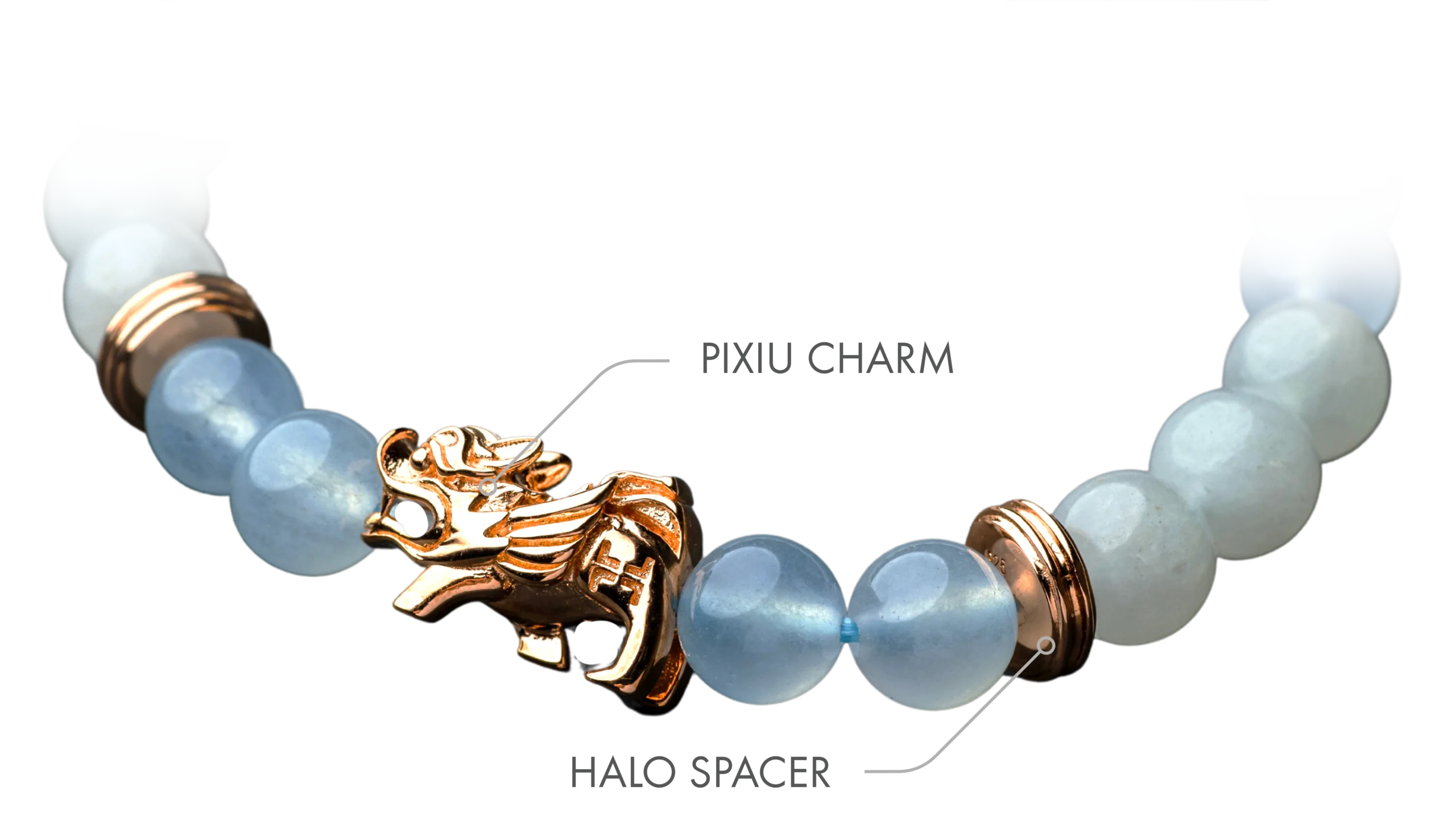 Feel the transformative power of The Illustrious bracelet, meticulously crafted to address common pain points and bring a touch of refinement to your life. If you’ve been yearning for a subtle yet impactful solution to challenges like financial uncertainties and a desire for enhanced romantic connections, this bracelet is your answer. The harmonious blend of White and Blue Nephrite Jade, complemented by two Halo Spacers and our iconic Pixiu Charm, is more than an accessory—it’s a statement of exquisite nobility. Elevate your energy, enhance your wealth luck, and attract romantic possibilities with The Illustrious. It’s time to adorn yourself with elegance and welcome positive changes into your life.