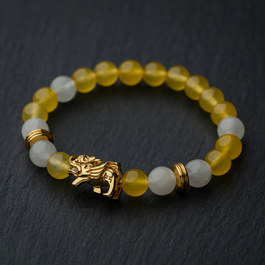 Navigate through financial uncertainties and enrich your romantic connections with The Myriad, a beacon of hope and transformation. Crafted with the harmonious blend of Yellow and White Nephrite Jade, this bracelet becomes a statement of exquisite nobility and refinement, addressing common pain points and offering a solution to the challenges you may face. Symbolizing prosperity illumination, confidence radiance, and joyful abundance, The Myriad is your guide to attracting wealth luck and enhancing romance luck. Adorn yourself with this transformative bracelet and witness the positive shift in your life.