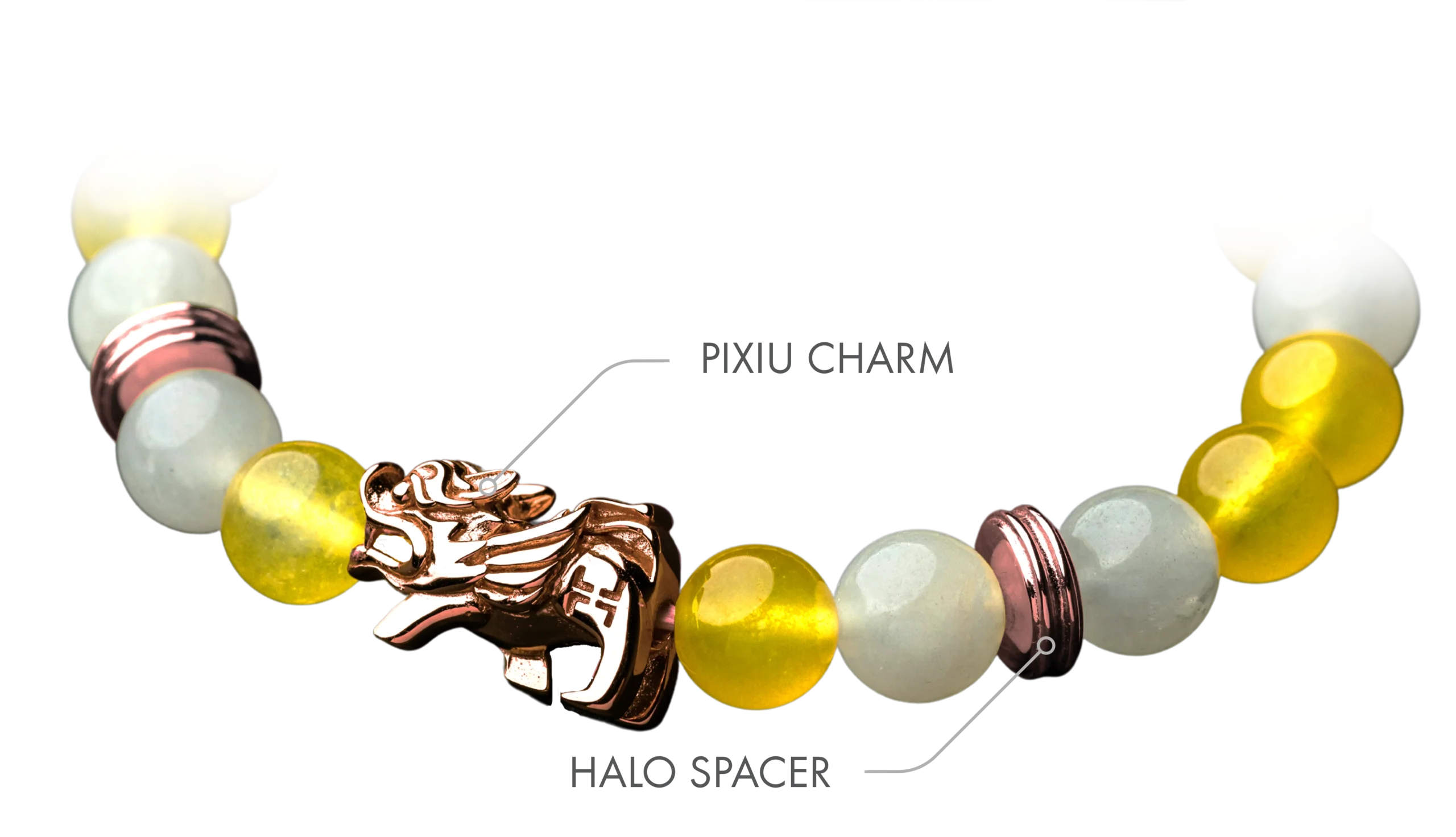 Our Pixiu charm, the centerpiece of this design, is a mythical creature believed to possess the power to attract wealth and prosperity. With meticulous detailing, the Pixiu serves as a symbol of good fortune, making it a meaningful and stylish addition to your collection. Enhancing the charm’s allure are Two Halo Spacers, meticulously designed to encircle the Pixiu with grace and sophistication. These spacers not only add a touch of brilliance but also create a balanced and visually appealing composition, ensuring that each element of the charm stands out. The attention to detail in the design and finishing reflects our commitment to providing you with a piece that not only enhances your style but also carries a sense of charm and positive energy. The Pixiu, known for its protective and auspicious qualities, is complemented by the Halo Spacers, creating a harmonious ensemble that represents not just jewelry but a meaningful accessory with positive connotations.