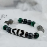 Meticulously crafted for individuals with a missing number 3 in their numerology chart. Each bead is a testament to the precision and artistry of skilled Tibetan artisans who delicately carve three eyes onto its surface. Symbolizing harmony, balance, and duality, these eyes serve as a powerful metaphor for your journey towards patience, understanding, and inner beauty. The alignment of the three eyes is carefully considered, enhancing the energetic properties of the stone, believed to amplify transformative effects and foster a profound sense of balance and alignment within the wearer. Crafted from authentic Tibetan materials, the 3-eye DZI Stone not only captivates the eye with its visual allure but also resonates with the ancient energies of the Himalayas. Embrace the uniqueness of each stone, allowing its individuality to forge a deep and personal connection, guiding you on a path of self-discovery and growth. Adorn yourself with the 3-eye Tibet DZI Stone, a symbolic companion tailored to harmonize and enhance your spiritual journey.
