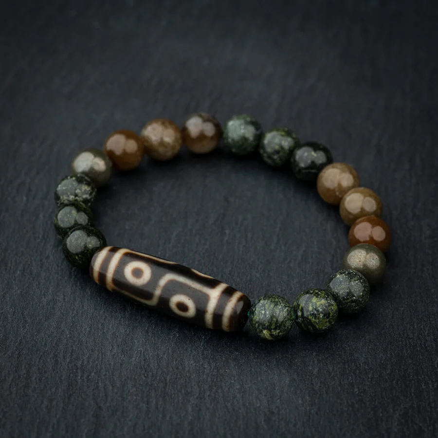 Tailored for individuals missing the stabilizing influence of the number 6 in their numerology, the 6-eye DZI Bracelet stands as a testament to precision craftsmanship by skilled Tibetan artisans. Each bead intricately showcases the carving of six eyes, symbolizing a profound connection to harmony, balance, and duality. These eyes become a compelling metaphor for the transformative journey, nurturing resourcefulness, and empowering you to find innovative solutions beyond financial means while maintaining an elegant approach to problem-solving. The intentional alignment of the six eyes enhances the energetic properties of the beads, believed to amplify transformative effects and foster a profound sense of equilibrium within the wearer. Sourced from authentic Tibetan materials, the 6-eye DZI beads captivate not only with their visual allure but also resonate with the ancient energies of the Himalayas. Embrace the distinctiveness of each bead, forging a deep and personal connection that guides you on a path of self-discovery and growth.