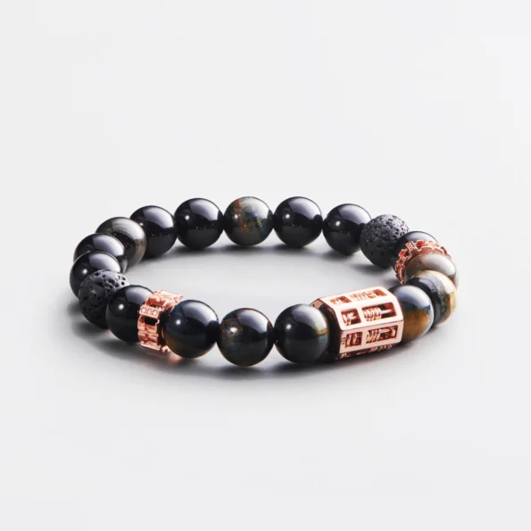 The triple abacus charms serve as steadfast companions, empowering you to navigate challenges with renewed confidence and resilience. Complemented by the harmonious energies of Blue Yellow Tiger Eye, Black Agate, and Lava Stone, this bracelet becomes a powerful talisman, aiding you in reclaiming your inner power and walking confidently on the path of prosperity.